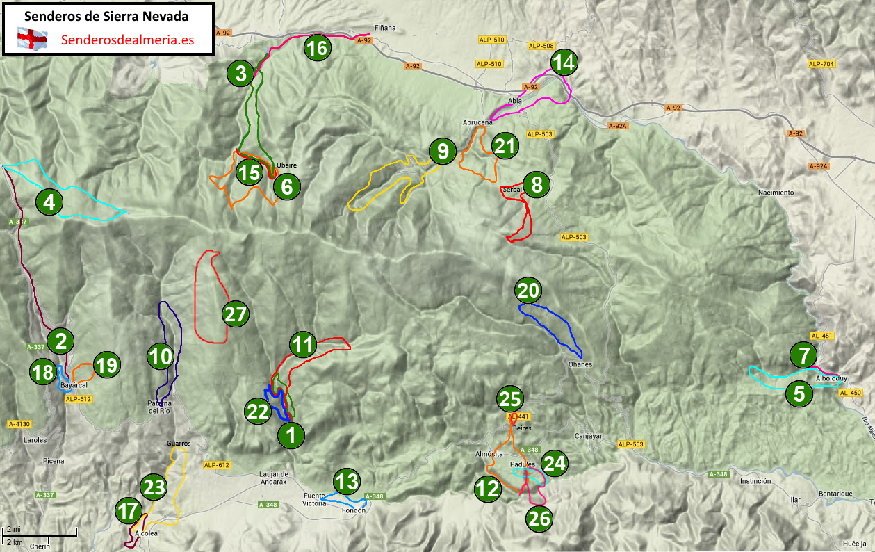 Senderos por Sierra Nevada, en Almería (Mapa de senderos de Sierra Nevada):